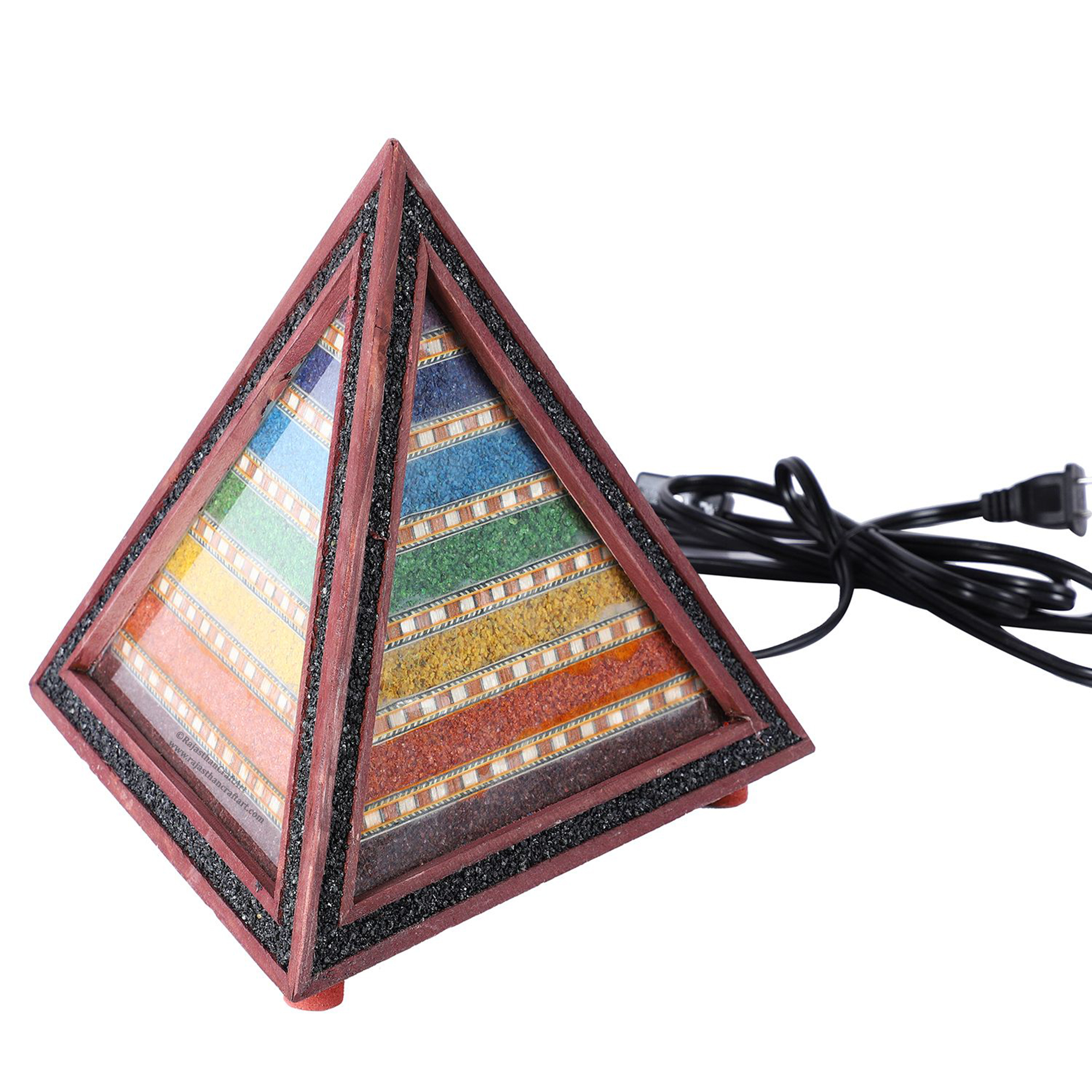 Pine Wood Triangle Shape Seven Chakra Gemstones Table Lamp with Shungite Border Brown Finish