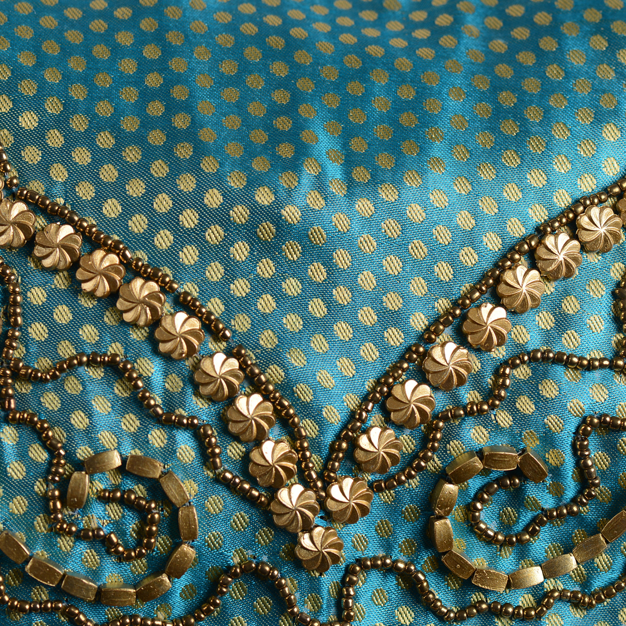 This turquoise satin, pearl, and acrylic beads potli bag gives your beautiful appearance a touch of style. Designed to match your fascinating appearance, this classic fashion accessory is perfect for keeping all your essentials and taking your fashion quotient to new heights. It will be a perfect gift item for your family or close friends.
