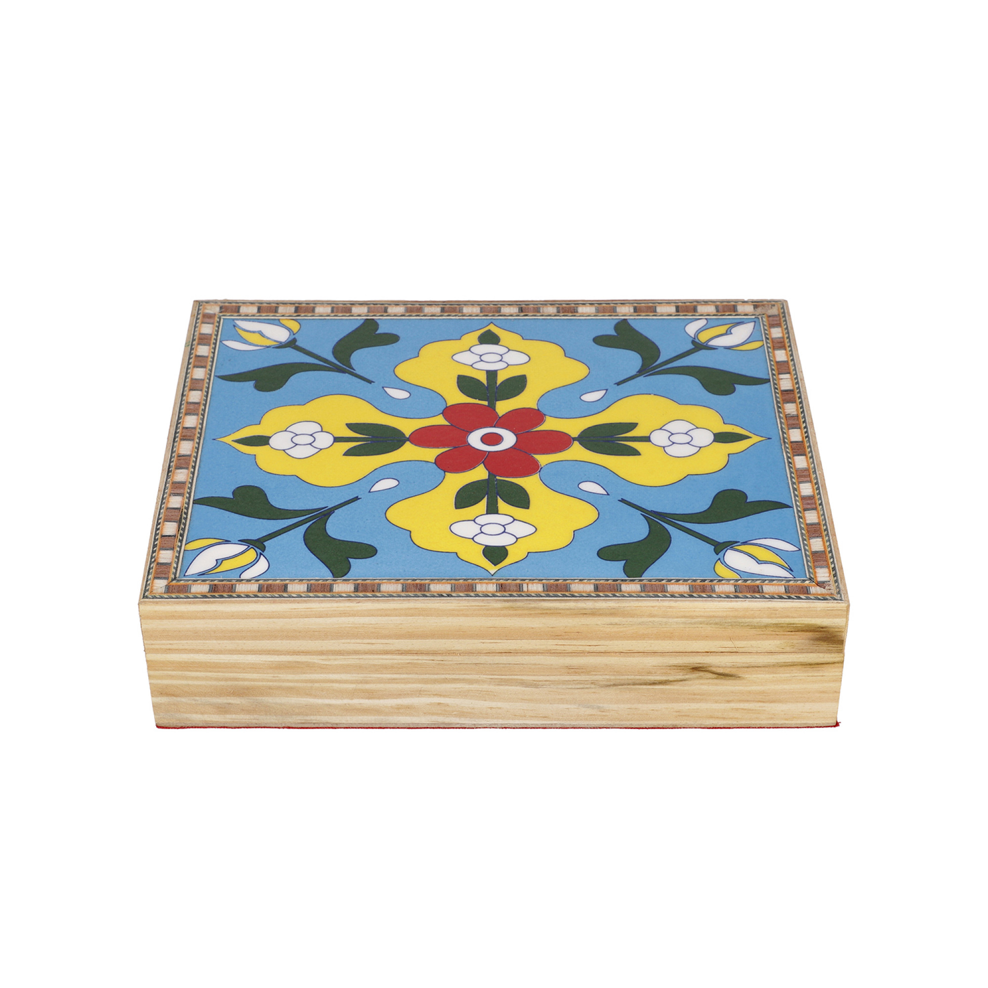 Pine Wood Ceremic Flower Painting Tile Top Storage Box