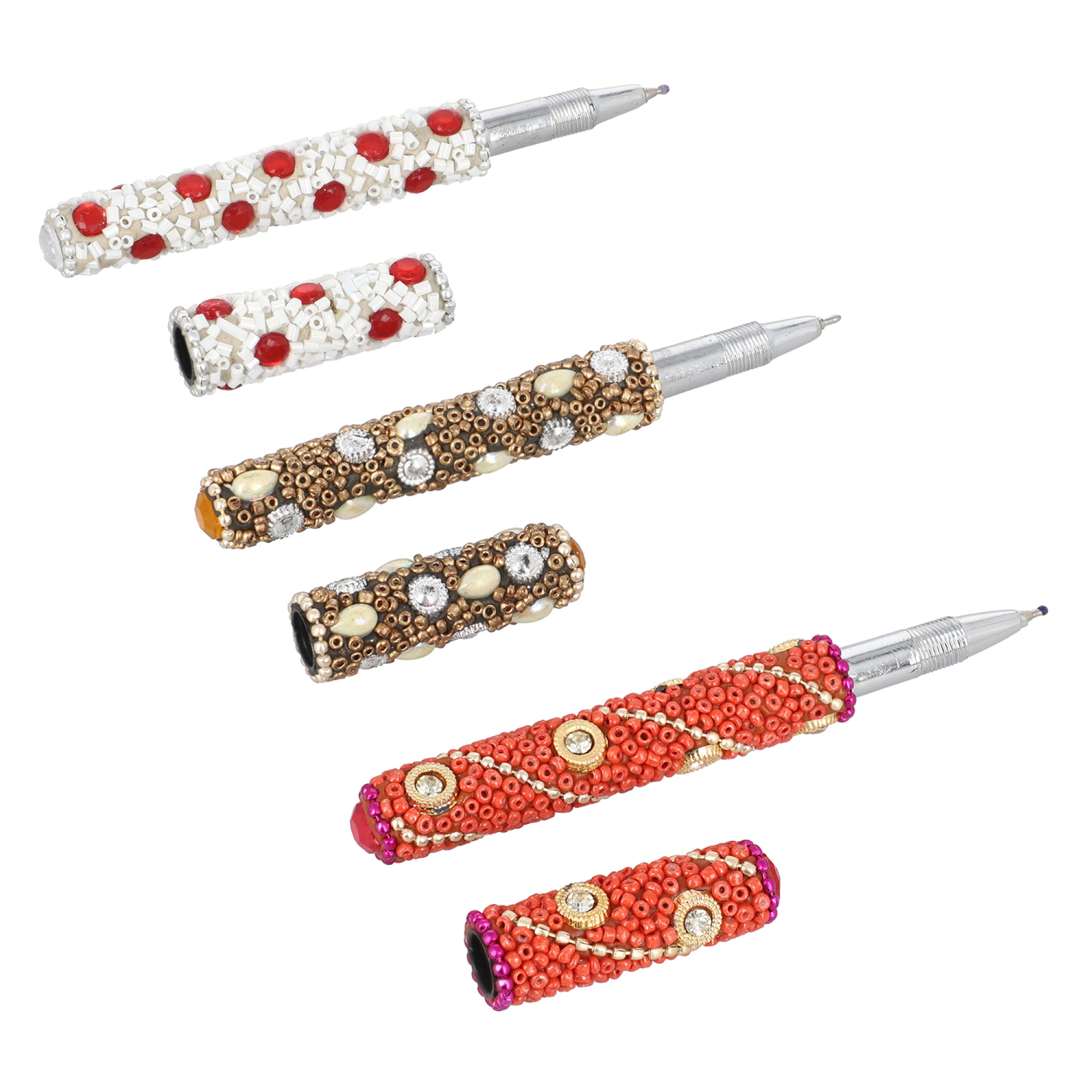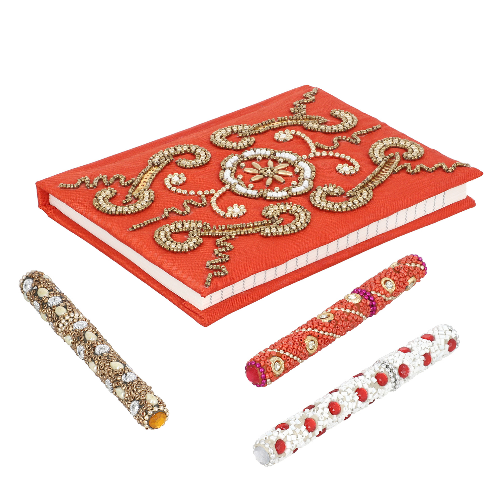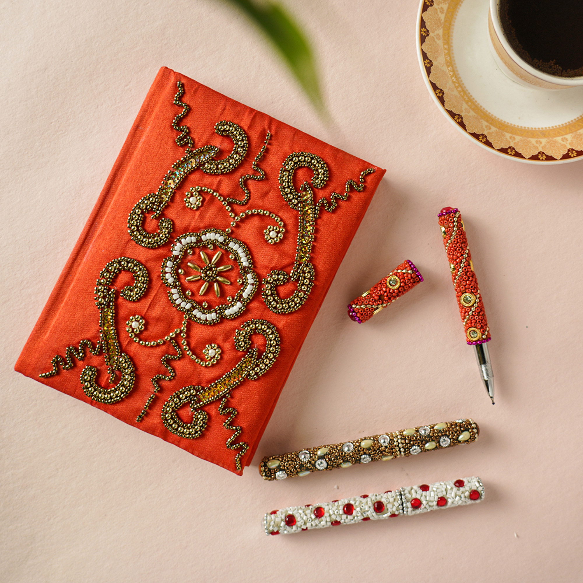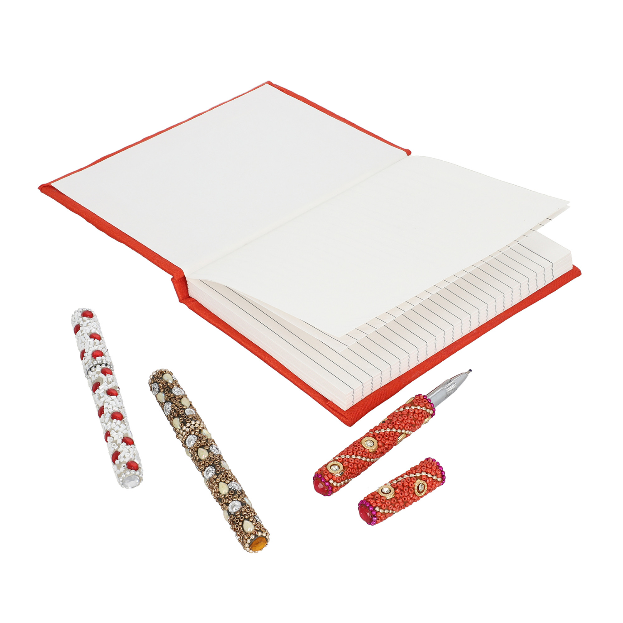 · SET OF FANCY DIARY AND 3 EMBELLISHED PENS: This set of four is handcrafted by the skilled