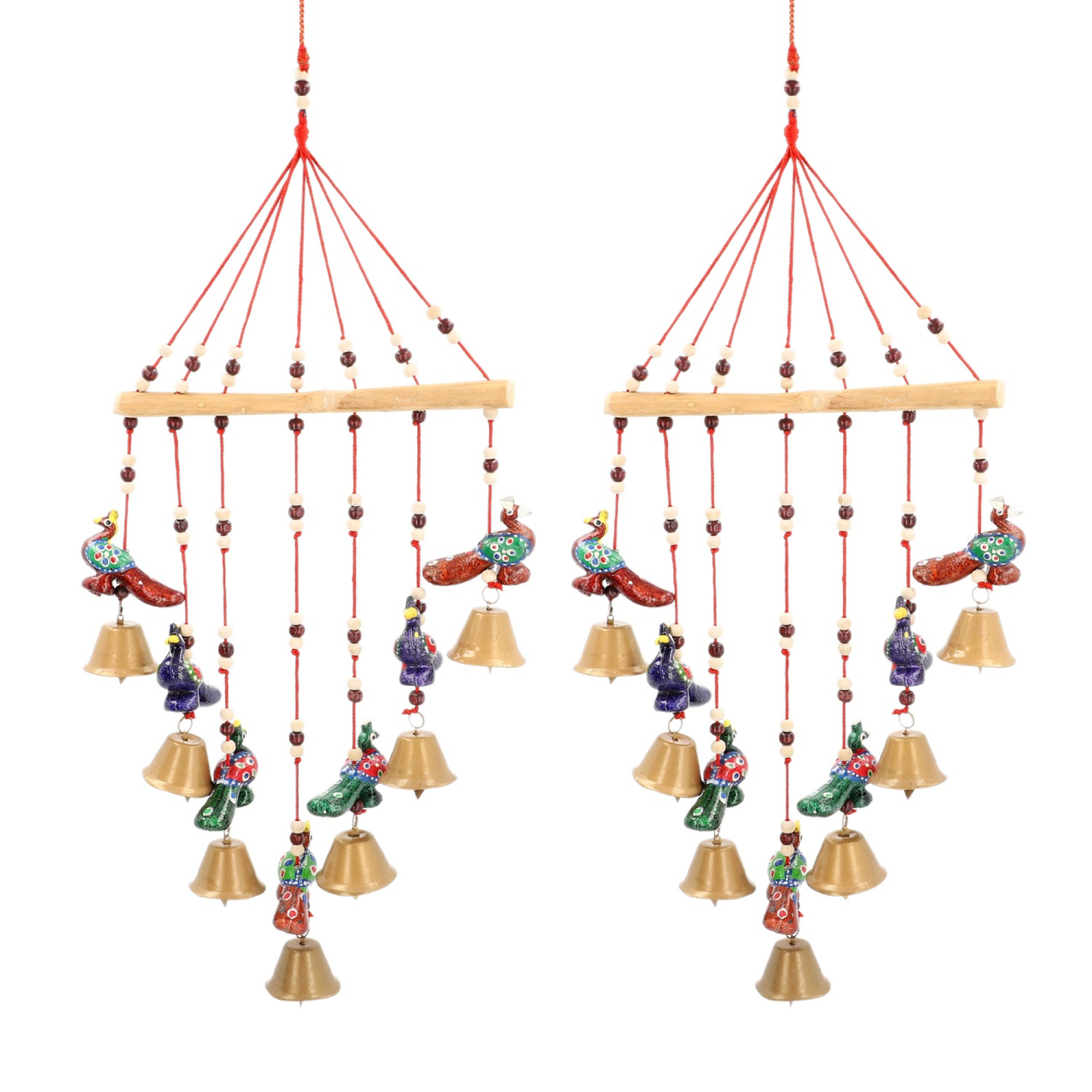 Bamboo Stick Peacock Wind Chain Set Hanging